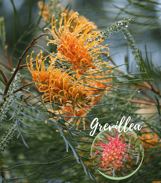 Featured is a beautiful exotic plant that is very popular among our native birds. Grevillea is a stunning option that often blooms year-round and available in many colours and varieties.