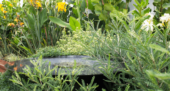 Designed by Sculpt Gardens, this ripple dish is situated amongst lush tropical planting. The portfolio can be viewed here.
