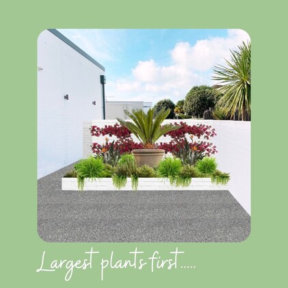 Having the larger plants in place first helps you see the composition of the garden beds in a clearer way. It is also more practical because the larger plants won’t overshadow the smaller ones. Additionally, planting large trees & shrubs requires more space to dig & move earth about and if this is done first you minimise the risk of disturbing smaller plants.